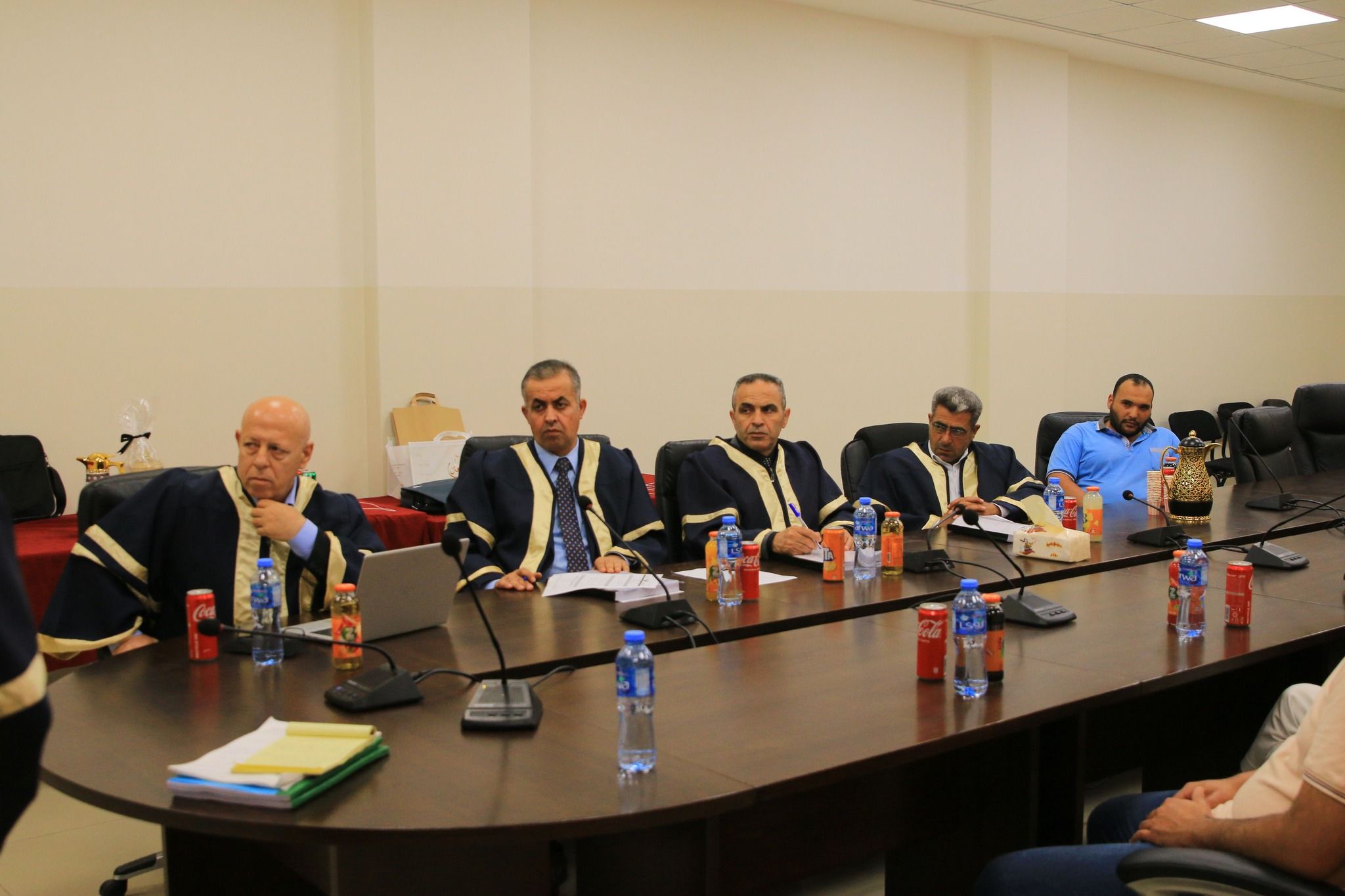 وفي الختام، أشادت اللجنة بجهود الباحث وبعرضها المتميز لموضوع الدراسة، وأوصت بنجاحها بعد الأخذ بعين الاعتبار الملاحظات اللازمة، لإثراء الجانب البحثي في الدراسة.